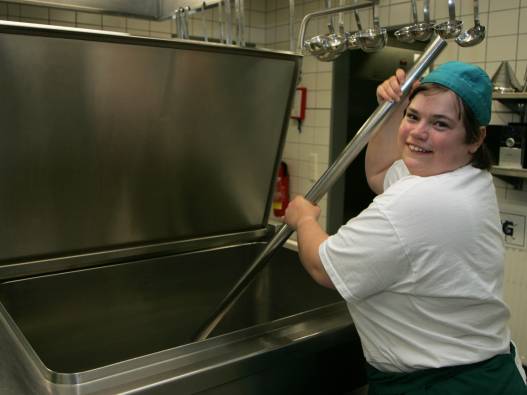 Jeden Tag wird von unserem Küchenteam das Frühstücksangebot zubereitet. Bis zu 400 Mittagessen werden gefertigt und ausgegeben.