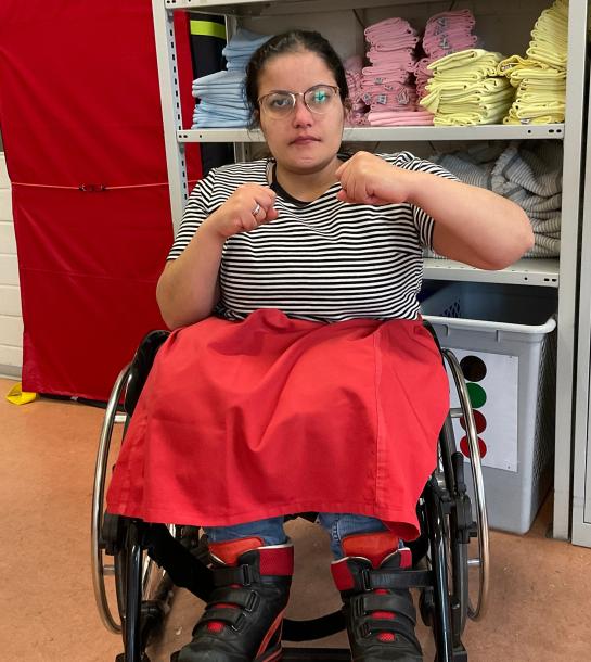 Beyza, eine der Teilnehmerinnen, erzählt: „Ich sitze zwar im Rollstuhl, aber ich kann jetzt mit meiner Faust ein Holzbrett kaputt schlagen. Ich hätte nie gedacht, dass ich das kann!“