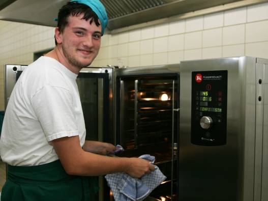Jeden Tag wird von unserem Küchenteam das Frühstücksangebot zubereitet. Bis zu 400 Mittagessen werden gefertigt und ausgegeben.